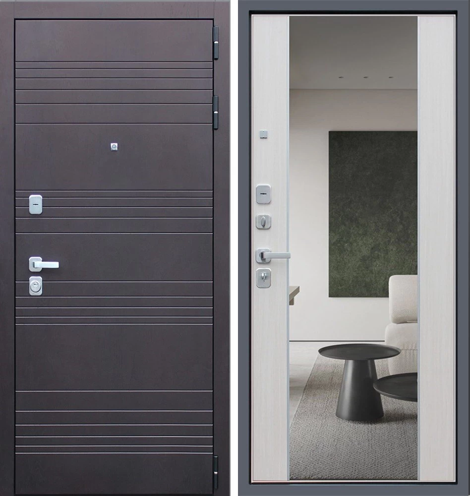 Надежная входная Дверь Дуэт с зеркалом премиум класса по цене 46 709 руб. Большая толщина стали защитит от проникновения в ваш дом, квартиру или коттедж. Используется очень качественная фурнитура: замки, цилиндры, ручки, защелки. Покрытие и отделка двери изготовлено под внимательным контролем производителя. Дверь имеет долгий срок службы и гарантию.