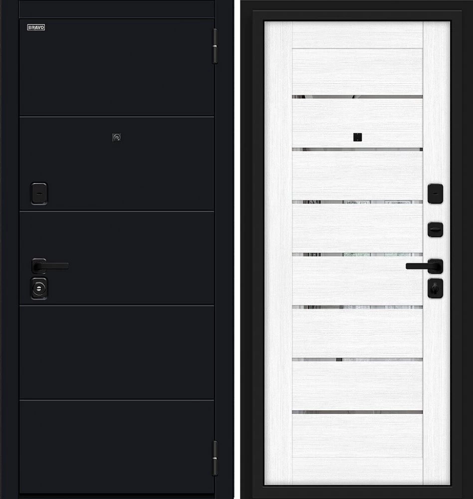 Надежная входная Дверь Браво Прайд Total Black/Snow Melinga премиум класса по цене 39 309 руб. Большая толщина стали защитит от проникновения в ваш дом, квартиру или коттедж. Используется очень качественная фурнитура: замки, цилиндры, ручки, защелки. Покрытие и отделка двери изготовлено под внимательным контролем производителя. Дверь имеет долгий срок службы и гарантию.